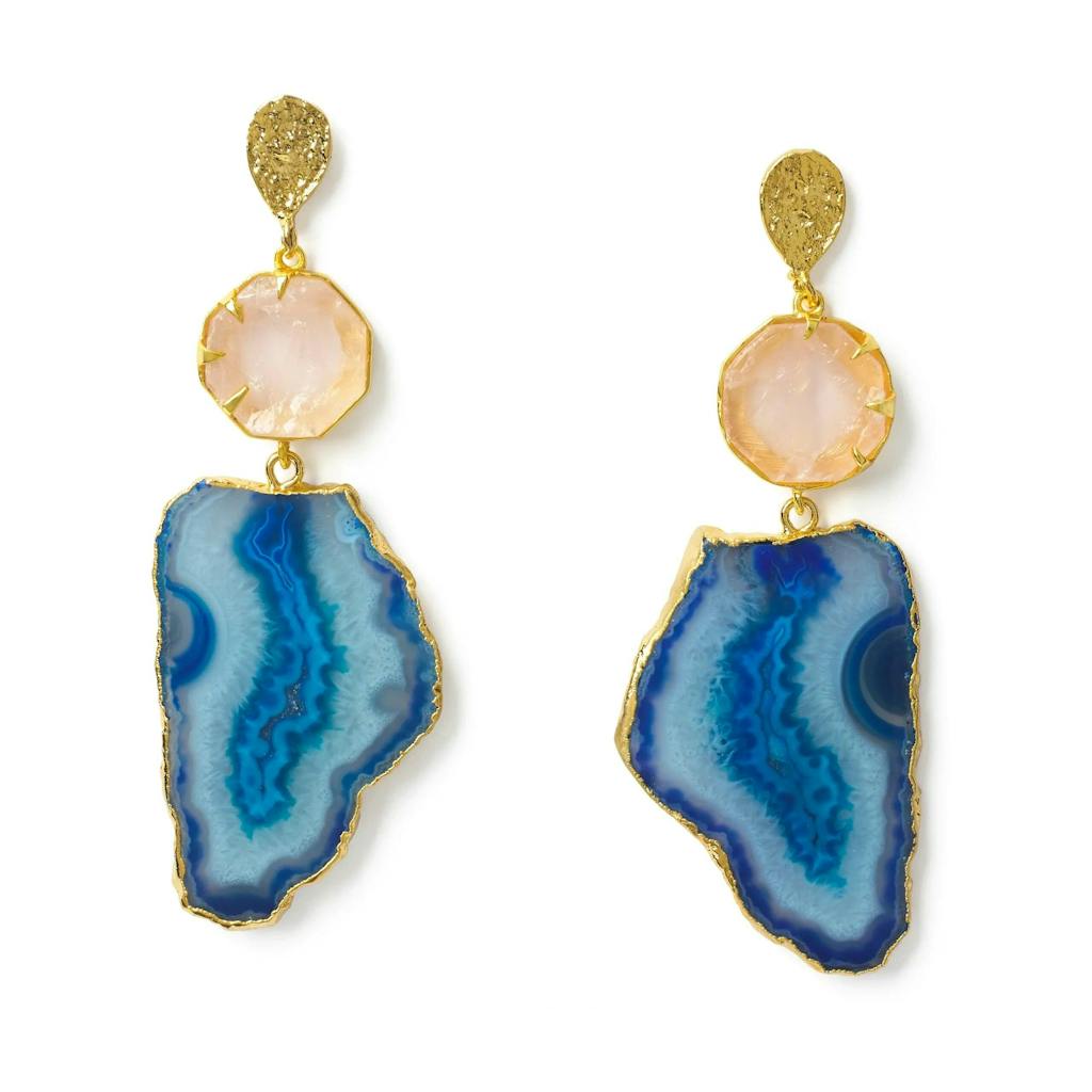 YAA YAA LONDON 'Hold on' Rose Quartz Gemstone Statement Earrings - Blue